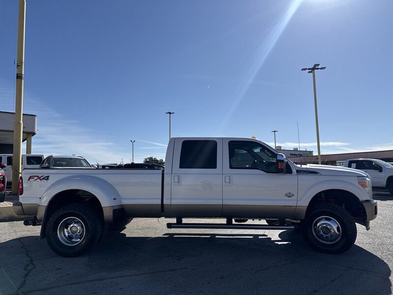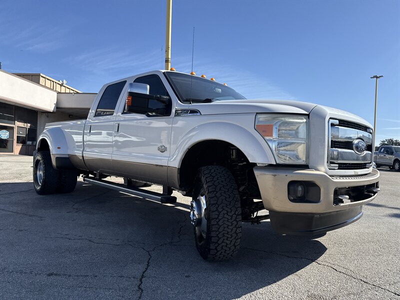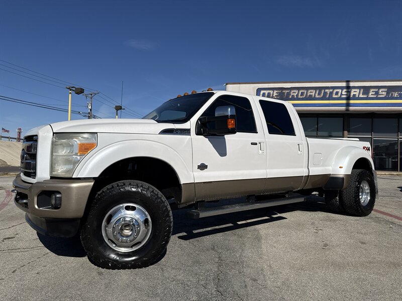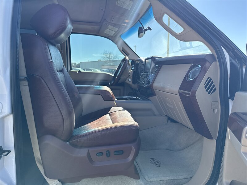 Behold a commanding masterpiece of American engineering: a 2013 Ford F-350 King Ranch, finished in classic Oxford White over a rich Brown King Ranch interior — a truck that dresses like a ranch king but works like an industrial titan. Under the hood sits the legendary Power Stroke 6.7L Biodiesel Turbo V8 delivering an authoritative 400 horsepower and approximately 800 ft.-lb. of torque — raw, diesel-driven muscle refined for hauling, towing and absolute road dominance.