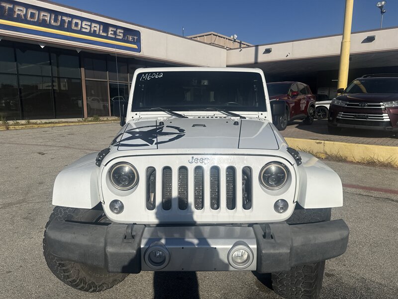 This 2014 Jeep Wrangler Sahara is equipped with a powerful 3.6L V6 engine delivering 285hp and 260ft. lbs. of torque. It comes loaded with several premium packages including the Connectivity Group, Dual Top Group, Max Tow Package, and more. Additional features include Air Conditioning with Automatic Temperature Control, Supplemental Front Seat Side Air Bags, Remote Start System, and Heated Front Seats, among others. The exterior is finished in a striking Bright White Clear Coat, complemented by a Brown interior. This Jeep Wrangler Sahara achieves a fuel efficiency of 16 MPG in the city and 21 MPG on the highway. With only optional features included, this vehicle is in excellent overall condition, making it a desirable choice for those seeking adventure and comfort on the road.