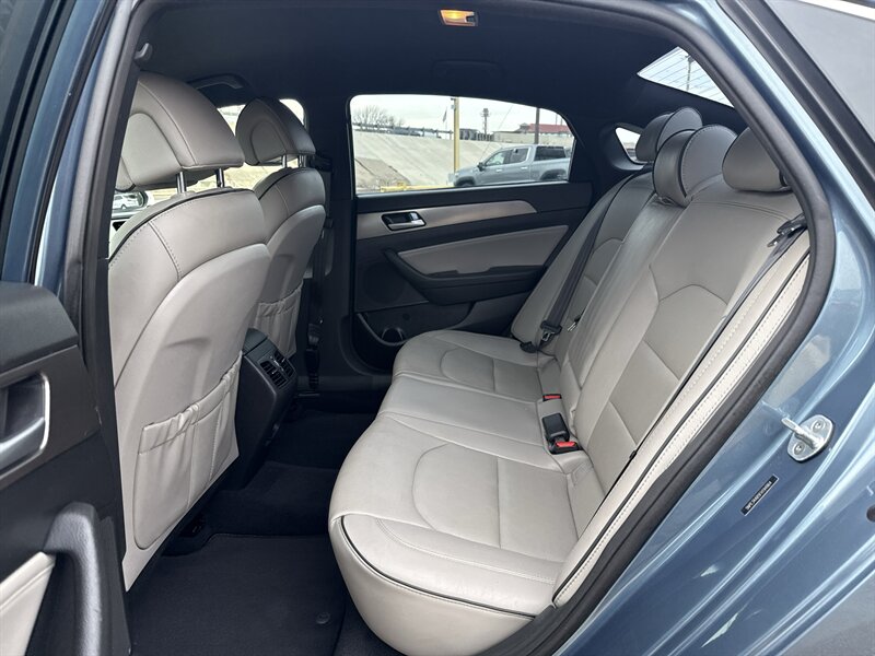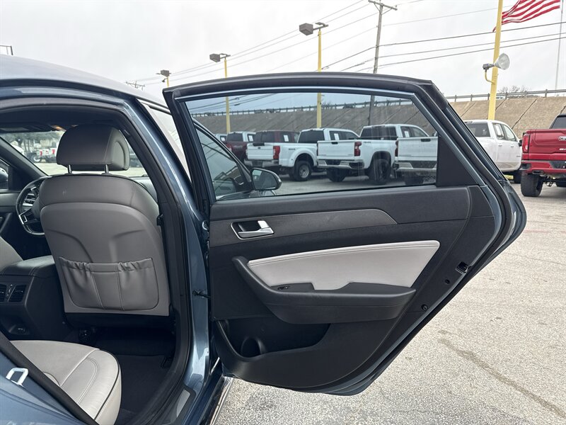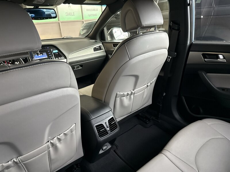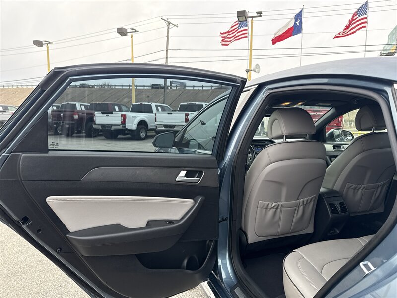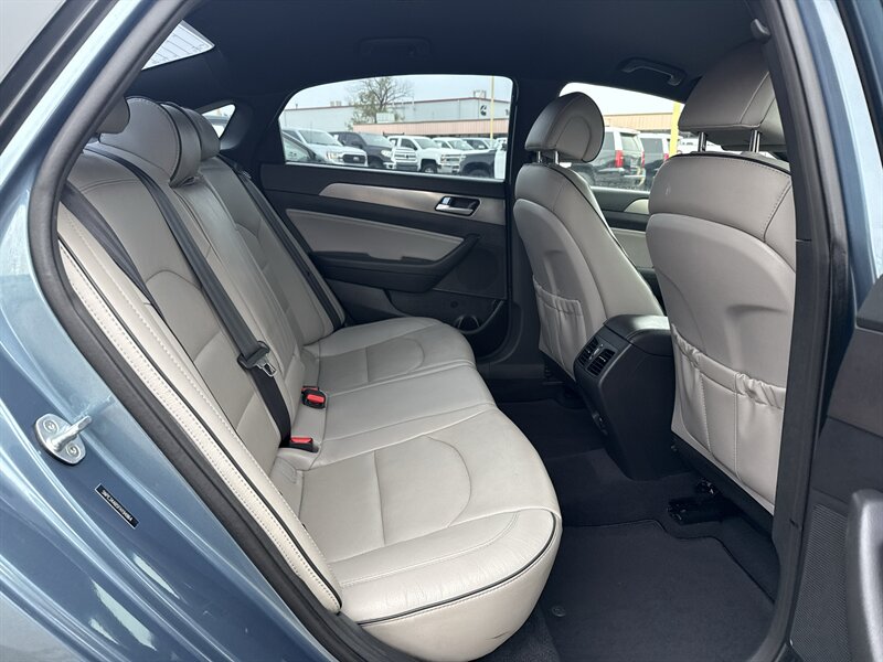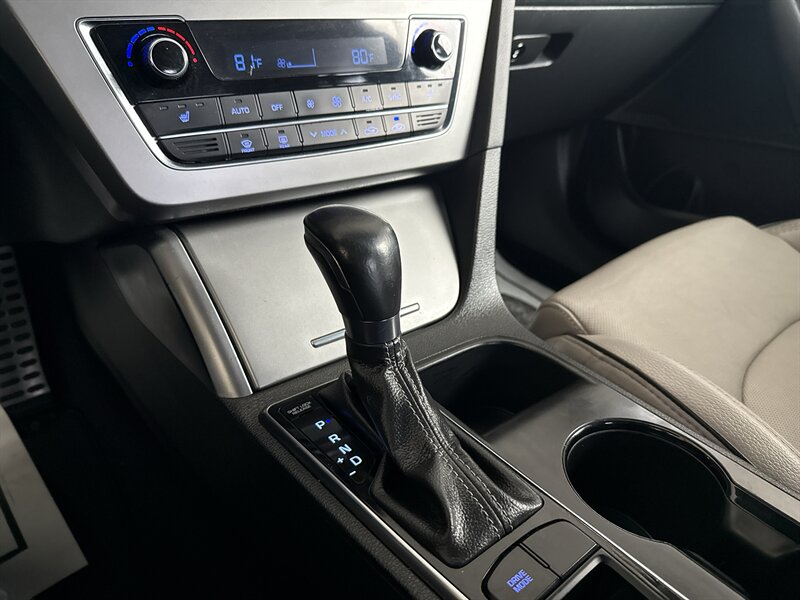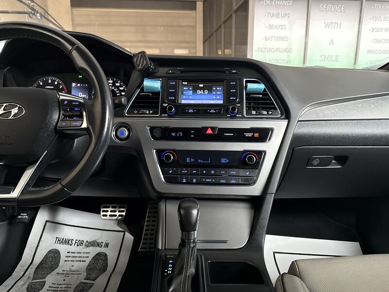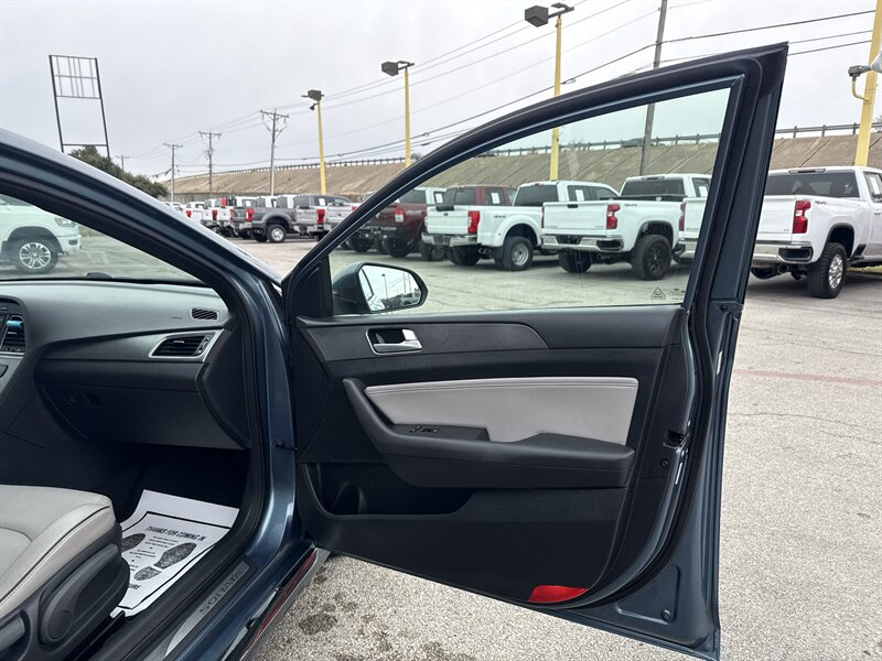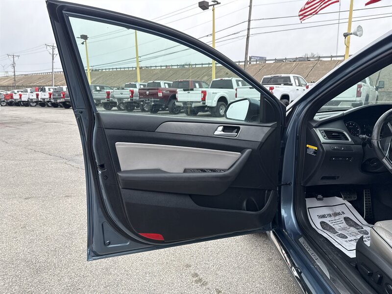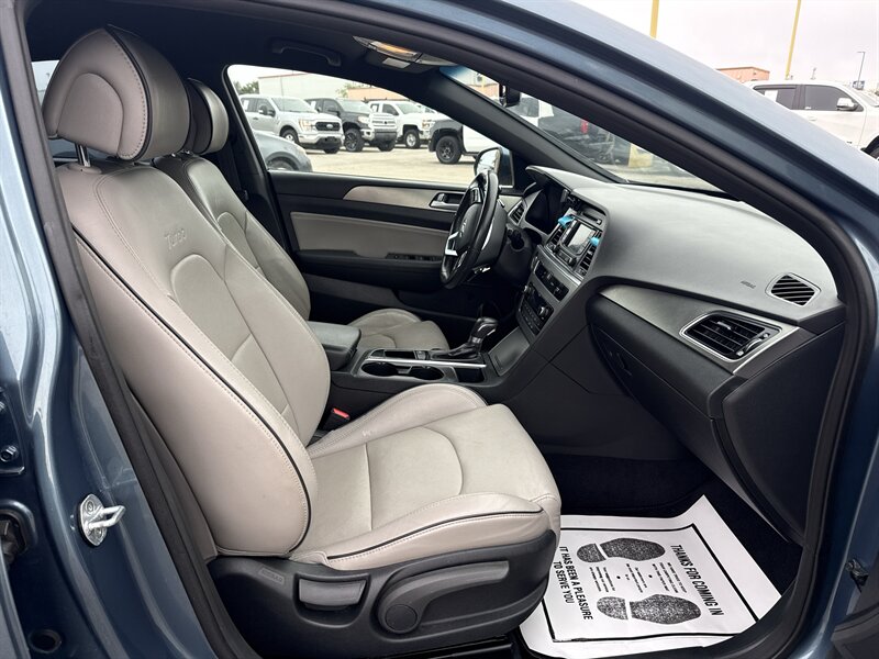 2015 Hyundai Sonata Sport 2.0T — Lakeside Blue exterior, Gray interior. Powered by the Theta II 2.0L turbocharged inline-4 producing 245 hp and 260 lb-ft of torque. EPA-rated at 23 MPG city and 32 MPG highway. Excellent overall condition with a clean CARFAX.