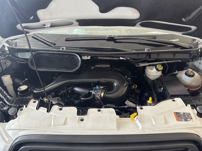 The exterior of this Transit 150 is finished in a classic Oxford White, providing a clean and professional appearance. The vehicle is equipped with practical features such as Auto Headlamps and Rain Sensing Wipers, enhancing visibility and safety in different weather conditions. It also includes Daytime Running Lamps for added safety on the road.