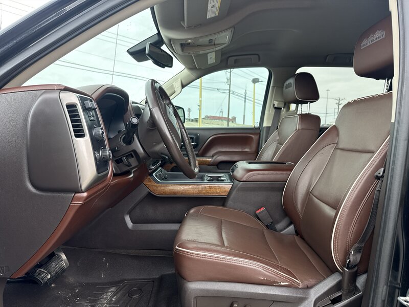 This High Country is a top-tier Silverado 1500, powered by GM’s EcoTec3 5.3L V8 producing 355 hp and 383 lb-ft of torque. It delivers a balanced blend of towing capability and everyday drivability, paired to a smooth automatic transmission optimized for both highway cruising and heavy-duty tasks. EPA fuel economy is rated at approximately 15 MPG city and 20 MPG highway. This specific truck is finished in Black with a Saddle leather interior and is in excellent overall condition.