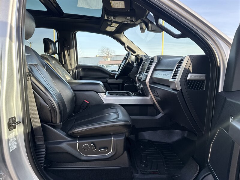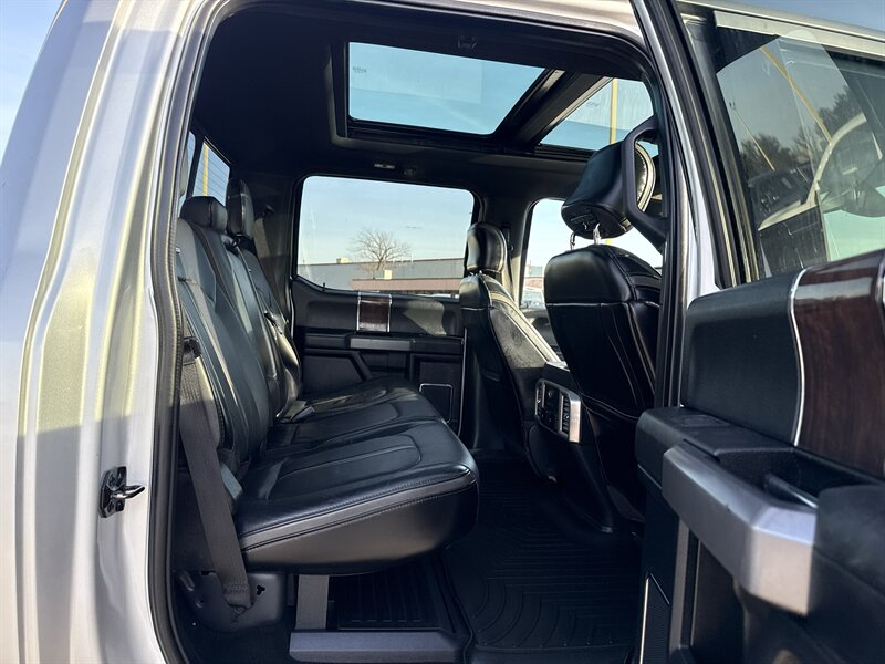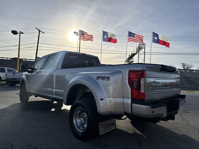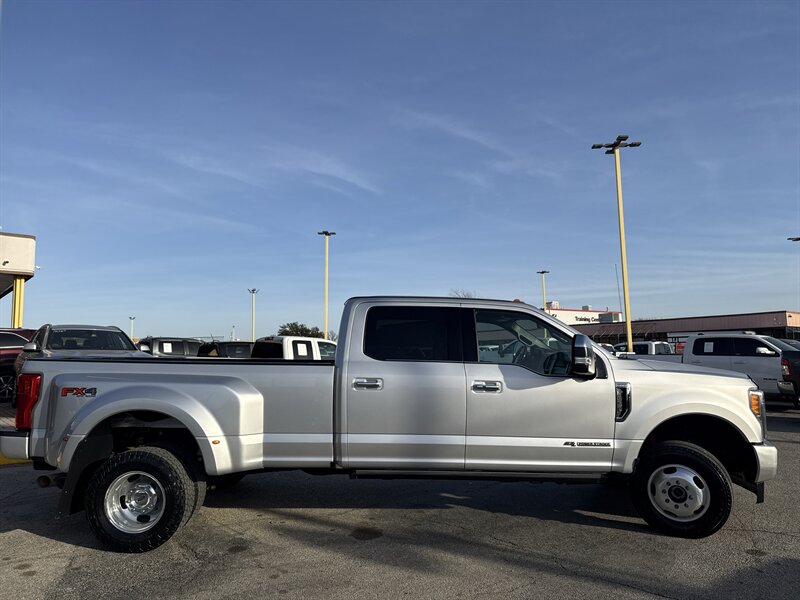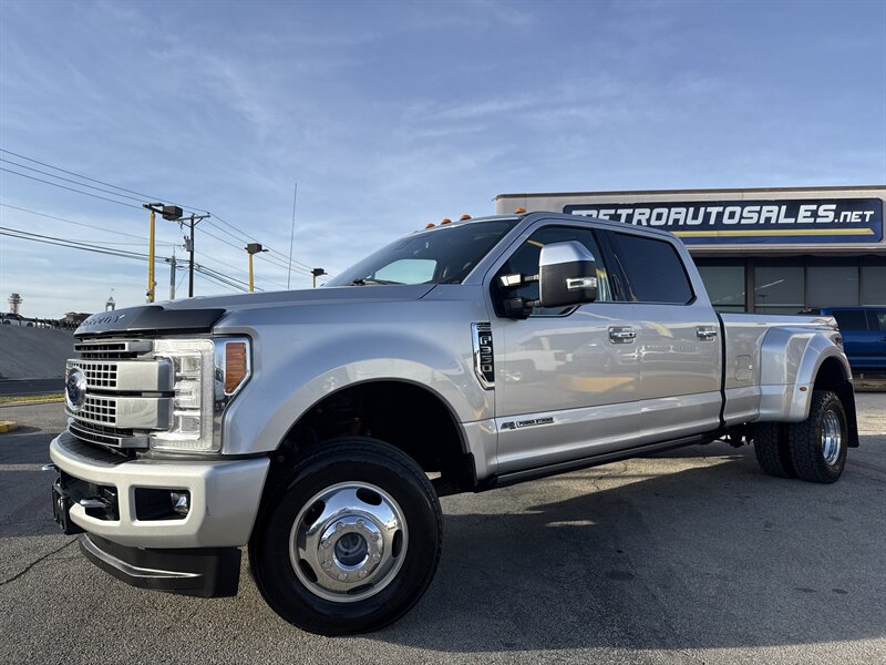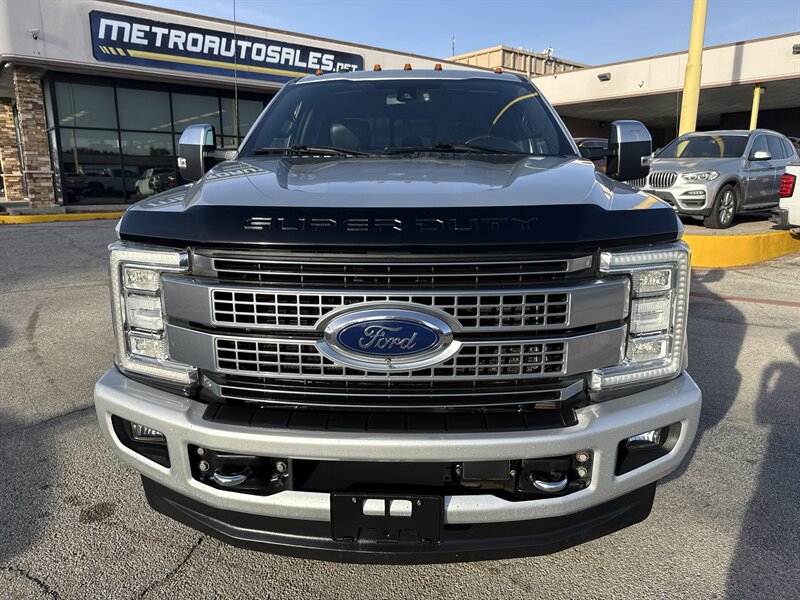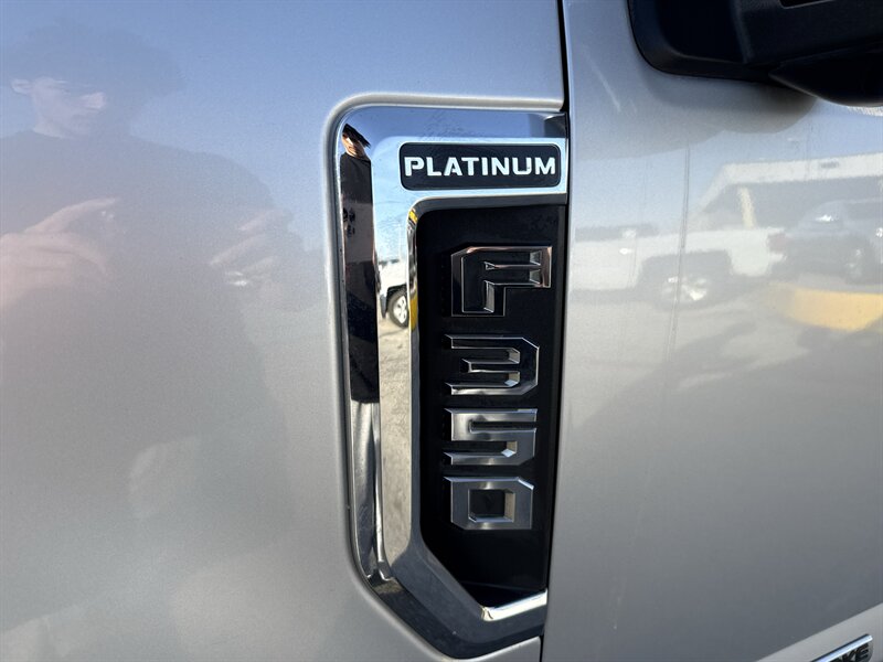2017 Ford F-350 Platinum — Silver exterior, Black interior. This Super Duty is powered by the factory-installed Power Stroke 6.7L biodiesel-capable turbo V8 diesel (440 hp and 925 lb-ft of torque), paired with Ford’s heavy-duty automatic transmission and 4x4 capability with an electronic shift-on-the-fly transfer case. The vehicle is in excellent overall condition and has a clean CARFAX.