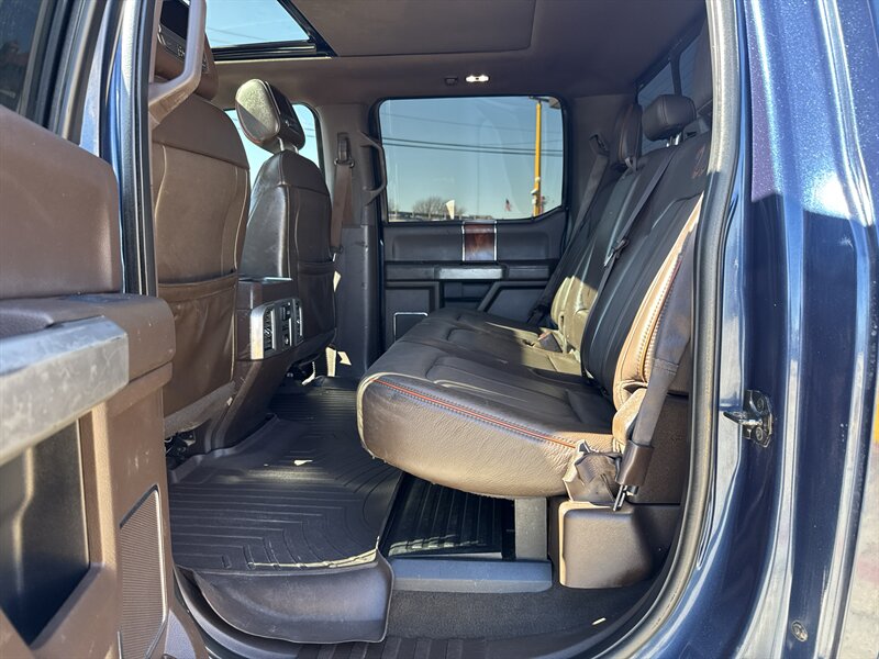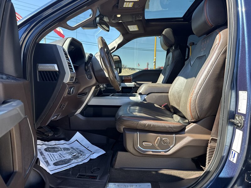 - King Ranch Ultimate PackageIncludes multi-contour seats, LED fog lamps, LED tail lamps, quad LED head lamps, twin panel moonroof, power deployable running boards, tailgate step, BLIS (Blind Spot Information System) with cross traffic alert, and Trailer Tow (BLIS sensor in taillamp).