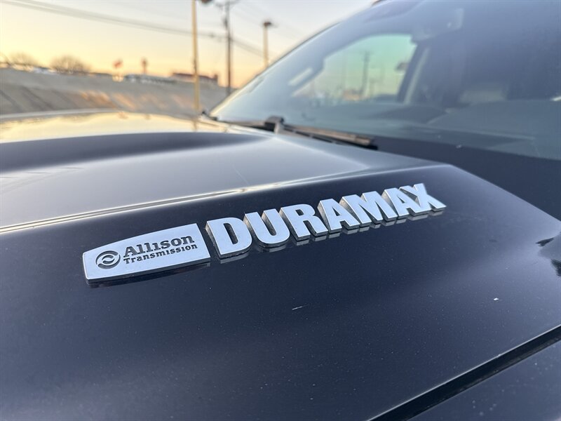 - Allison automatic transmission (factory paired with the Duramax) and heavy-duty charging/battery options listed among the vehicle equipment.