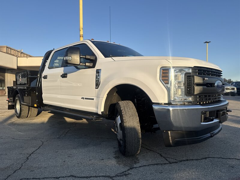 2018 Ford F-350 Lariat — White exterior, Gray interior. This F-350 is powered by a Power Stroke 6.7L biodiesel-capable turbo V8 (as equipped: 330 hp, 750 lb-ft torque) and has below 78,000 miles (averaging under 9,000 miles per year). The truck is in excellent overall condition.
