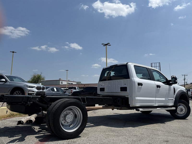 The exterior of the F-550 is finished in a classic White, providing a clean and professional appearance that is both functional and stylish. This truck is equipped with a durable bed that is ready for hauling heavy loads, along with features such as chrome bumpers and grille, integrated trailer tow mirrors, and LED headlamps that enhance visibility and safety during nighttime driving.