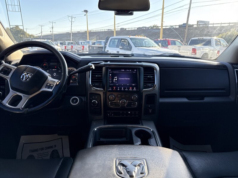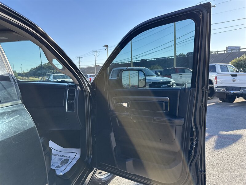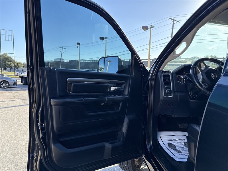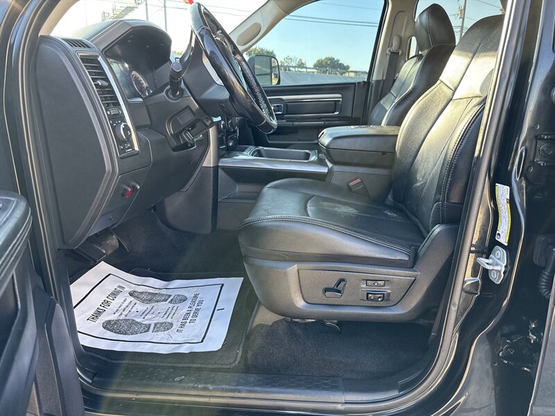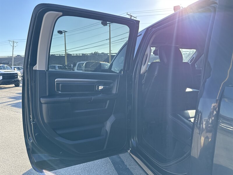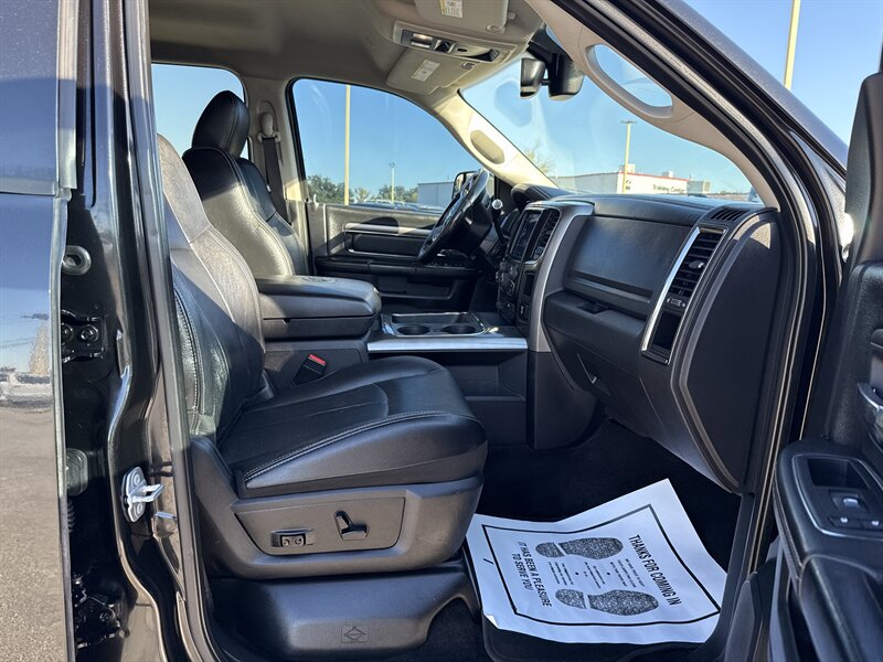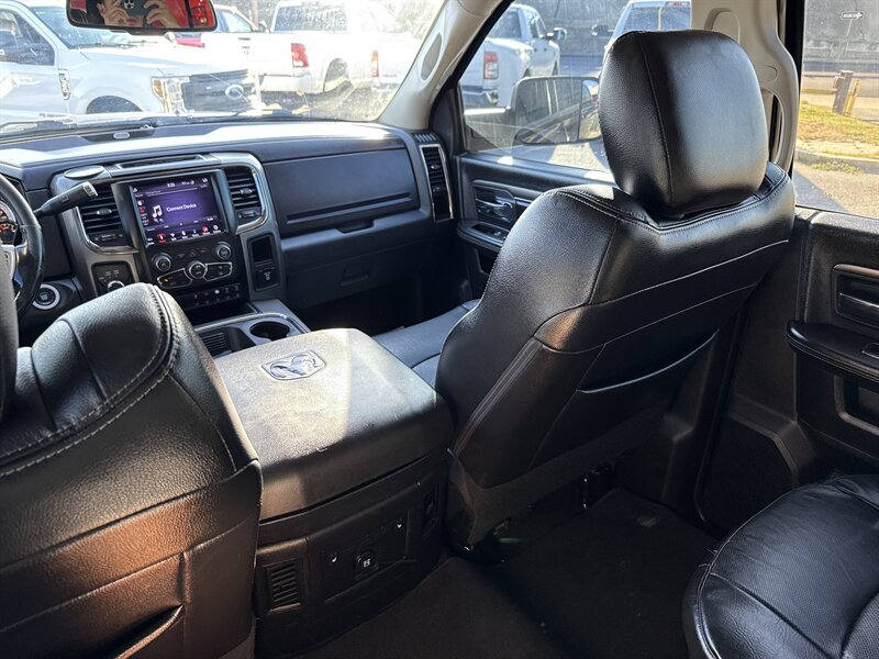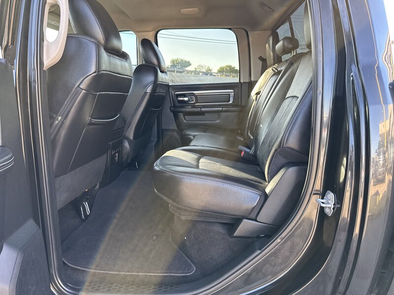 - Sport Appearance GroupIncludes flat black badges, black bi-function projector headlamps, body color door handles, body color grille, black Ram head tailgate badge, painted front and rear bumpers, monotone paint, power folding and power adjustable black exterior mirrors, heated and ventilated leather trimmed 40/20/40 front bench seat, power adjustable lumbar control, front center seat cushion storage, rear 60/40 split folding seat, folding flat load floor storage, and front armrest with cupholders.