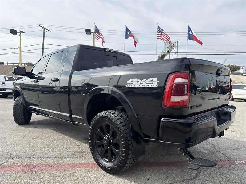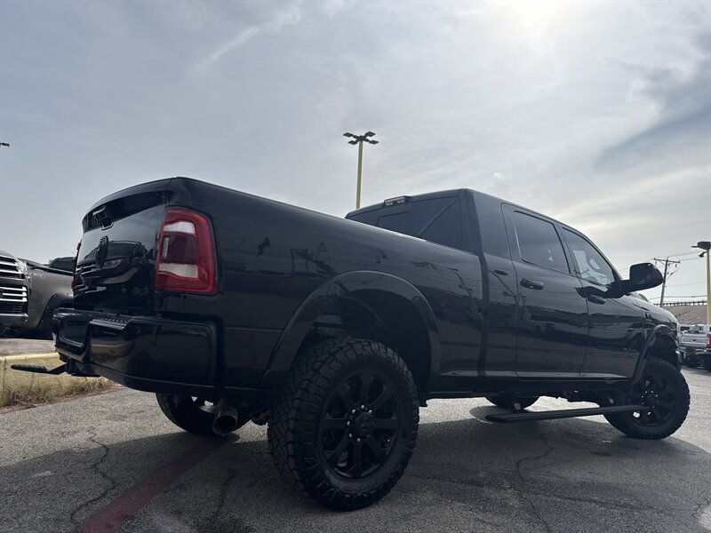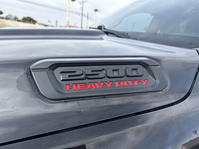 The exterior of this RAM 2500 is finished in a striking Diamond Black Crystal Pearl Coat with Billet Silver Metallic Clear Coat accents, giving it a bold and sophisticated appearance. Its commanding presence is complemented by chrome accents, a prominent front grille, and stylish LED headlights that enhance visibility and add to the truck's modern aesthetic.