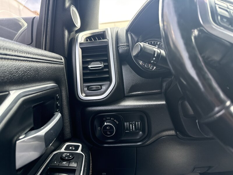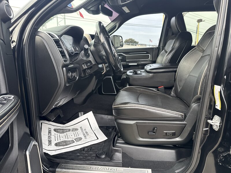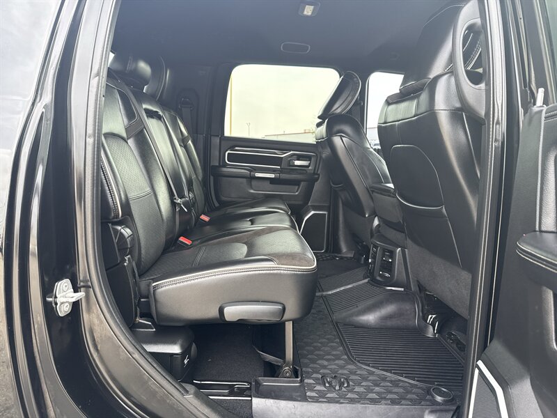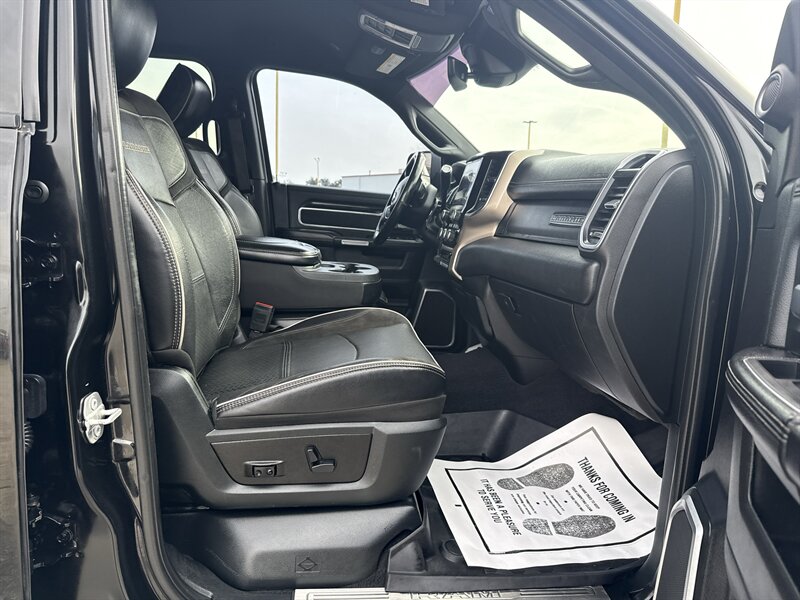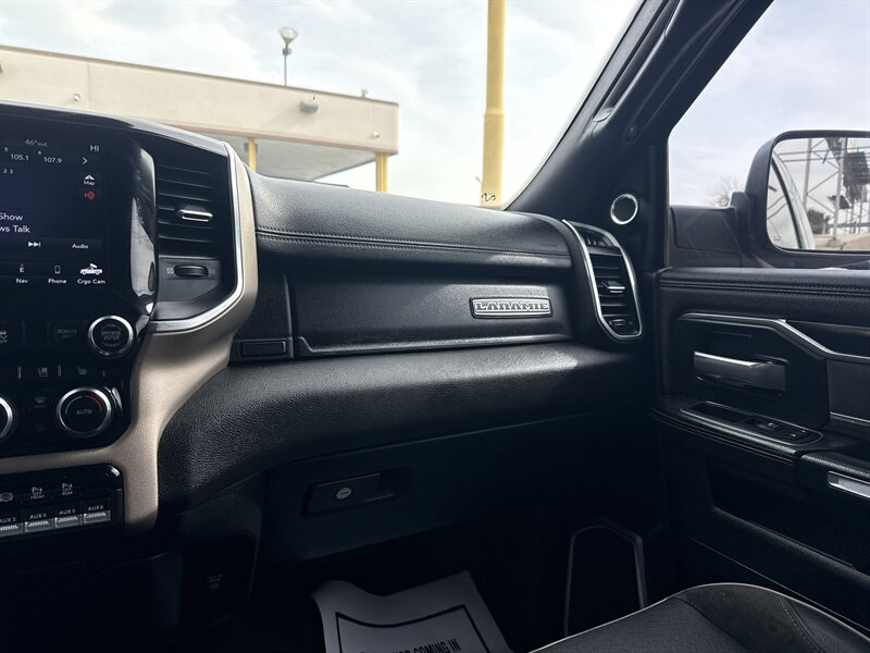 Inside, the cabin is adorned in a sleek Black color scheme, featuring high-quality materials and a spacious layout designed for comfort and convenience. The Laramie trim comes equipped with premium leather seating, offering both elegance and durability. The front seats are heated and ventilated, ensuring optimal comfort in any weather condition. The rear seats also provide ample space for passengers, making it perfect for both work and leisure.