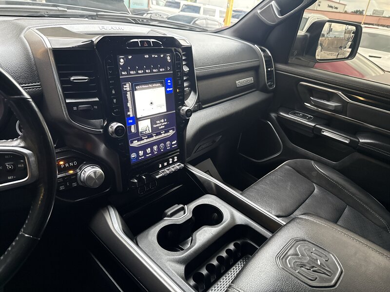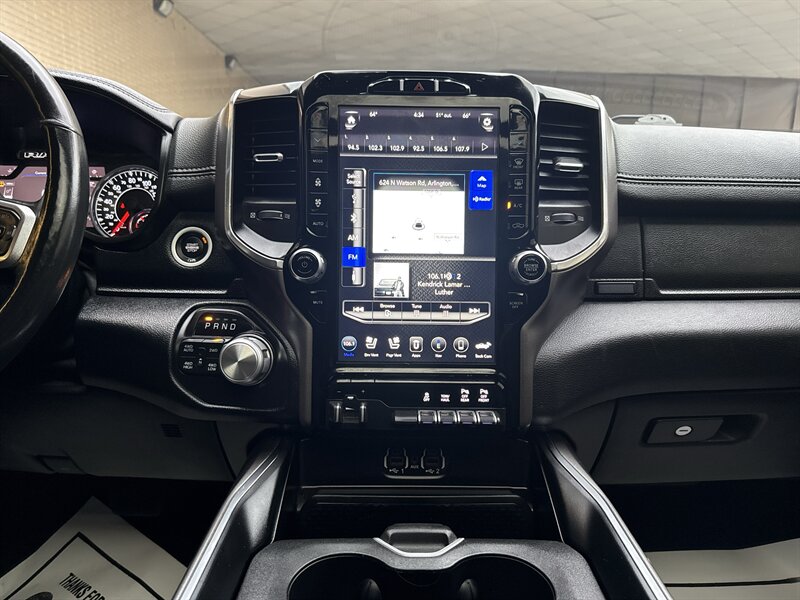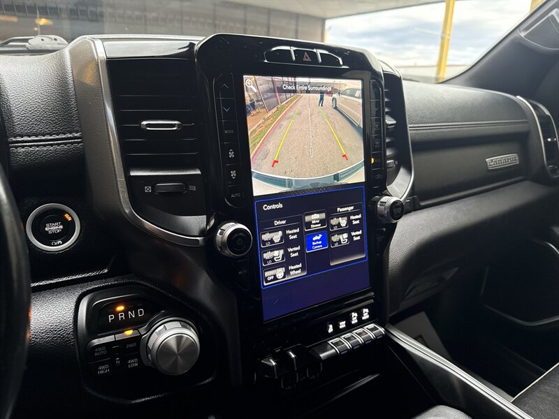 - Laramie Level 2 Equipment GroupIncludes blind-spot monitoring with trailer coverage and rear cross path detection, ParkSense front and rear park assist system w/stop, automatic high beam headlamp control, rain-sensitive windshield wipers, 8.4 inch touch screen display, Apple Carplay, Android Auto, AM/FM radio, HD radio, integrated voice command with Bluetooth, media hub with USB and auxiliary audio inputs, GPS navigation, SiriusXM satellite radio with Traffic Plus, Travel Link and Guardian, Harman Kardon 19 speaker audio system with 900 watts, rear heated and recline 60/40 split folding seat, rear underseat compartment storage, and remote tailgate release.