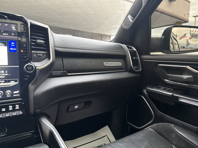 Step inside, and you’re greeted by a sophisticated Black interior that offers a spacious and inviting atmosphere. The Laramie trim boasts premium leather-trimmed seats that are both comfortable and stylish, ensuring that every drive is a pleasure. You'll appreciate the roomy cabin, which provides ample space for passengers and cargo alike, making it perfect for family trips or hauling gear for your weekend adventures.