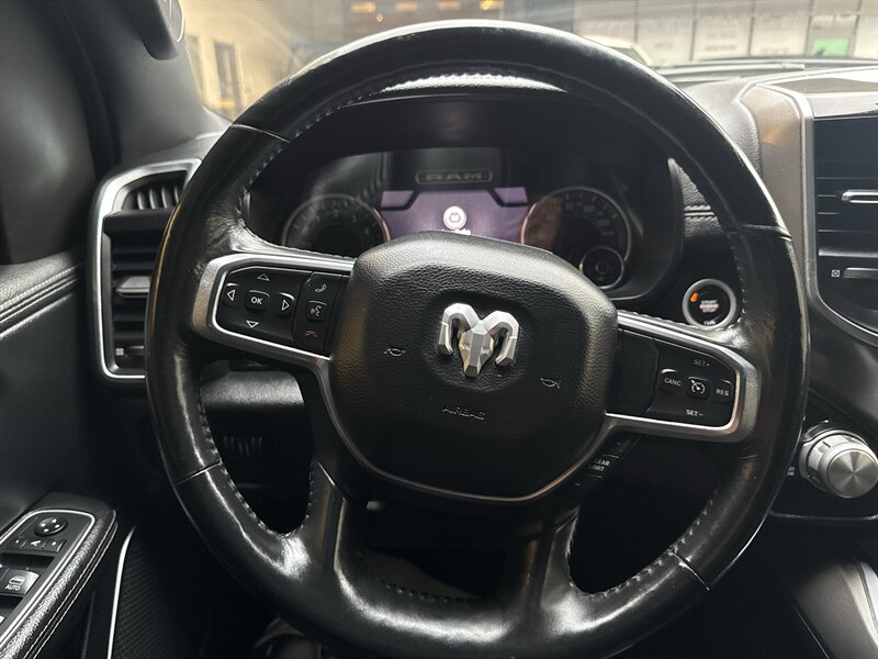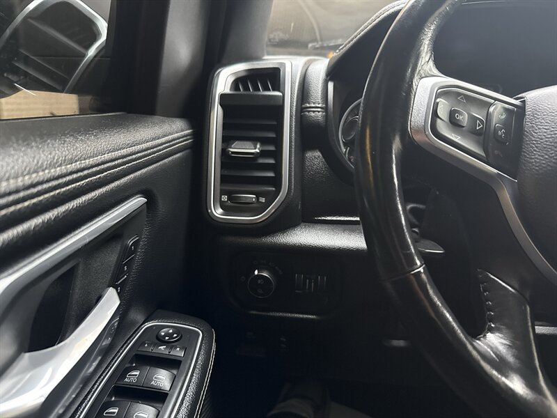 Safety is a top priority, and this truck is equipped with advanced features including adaptive cruise control, blind-spot monitoring, and lane-keeping assist to help keep you and your loved ones secure on the road. The RAM 1500 also includes a rearview camera, parking sensors, and automatic emergency braking for added peace of mind.
