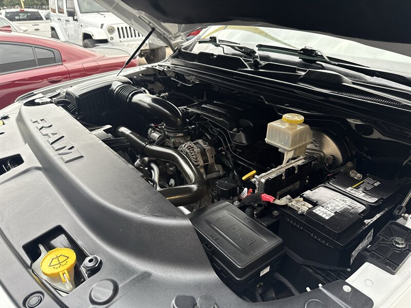 - Quick Order Package 27HIncludes vehicle with standard equipment, 5.7L V8 HEMI eTorque engine with Multi-Displacement System rated at 395hp @ 5600 rpm and 410ft. lbs @ 3950 rpm, heavy duty engine cooling, belt-drive motor generator unit, 48-volt hybrid battery with .43 kWh capacity, auto start/stop, 8-speed shiftable automatic transmission, dual exhaust with bright tips, HEMI badge, and active noise-control system.