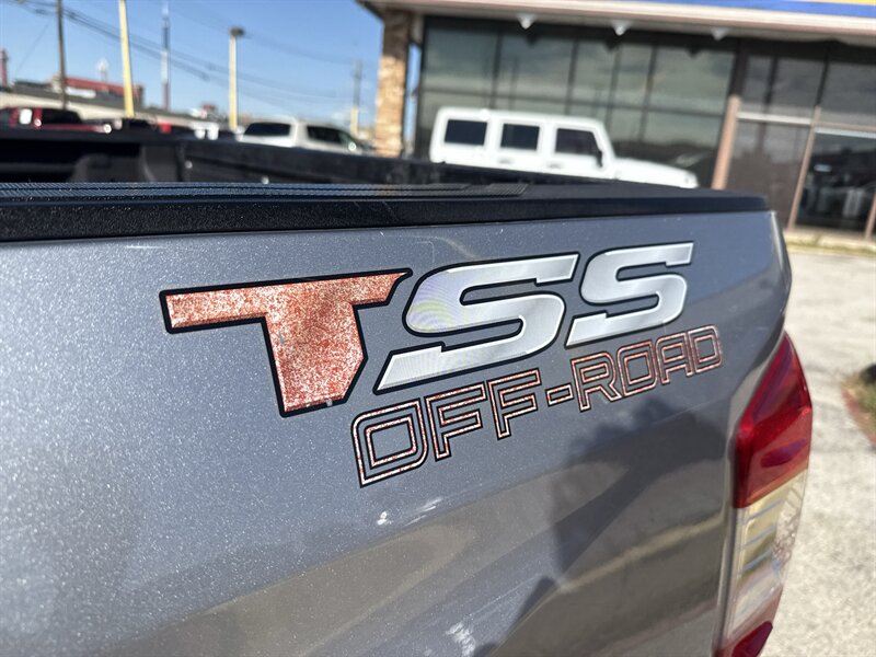 - TRD Off-Road Plus PackageIncludes 18-inch split 5-spoke TRD Off-Road Package alloy wheels with black accents and P275/65R18 all-terrain tires, trail-tuned Bilstein shock absorbers, engine skid plate, fuel tank skid plate, front tow hooks, bedside TRD Off-Road decal, LED headlights, LED fog lights, TRD Off-Road floor mats, Smart Key System on front doors, push button start, navigation system, 8-in. high-resolution touch-screen with split-screen display, AM/FM radio, HD radio, 9 speakers, auxiliary port, USB 2.0 port with iPod connectivity and control, advanced voice recognition, hands-free phone capability, and phone book access and music streaming via Bluetooth wireless technology, Siri Eyes Free, SiriusXM satellite radio with 3-month All Access trial, Toyota Connected Services with 1-year Remote Connect trial, and 10-year Service Connect trial.