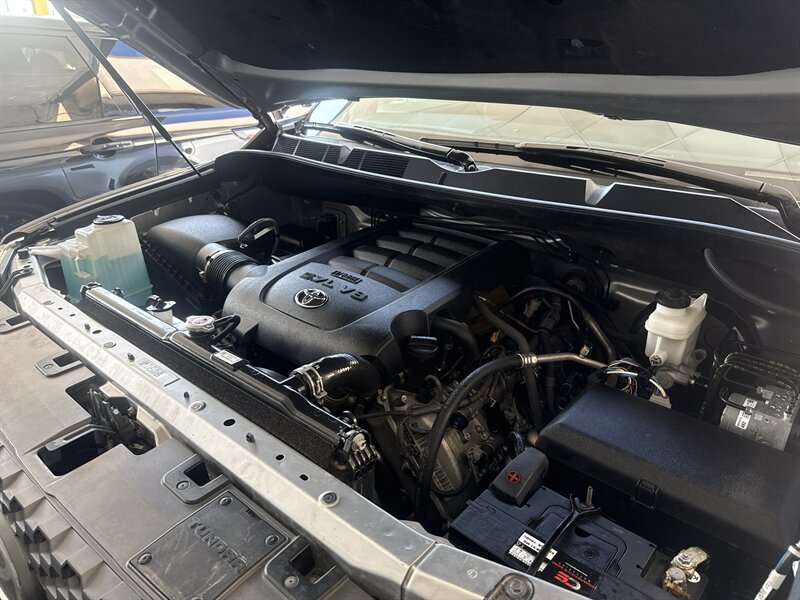 - TRD Sport PackageIncludes 20-inch 6-spoke TRD Sport Package alloy wheels with black accents and P275/55R20 tires, sport-tuned Bilstein shock absorbers, TRD front and rear anti-sway bars, color-keyed grille surround, mirror caps and front and rear bumpers, LED headlights, LED fog lights, TRD Sport floor mats, TRD shift knob, hood scoop, bedside TRD Sport decal, Smart Key System on front doors, push button start, Toyota Connected Services with 1-year trial of Remote Connect, and 10-year trial of Service Connect.