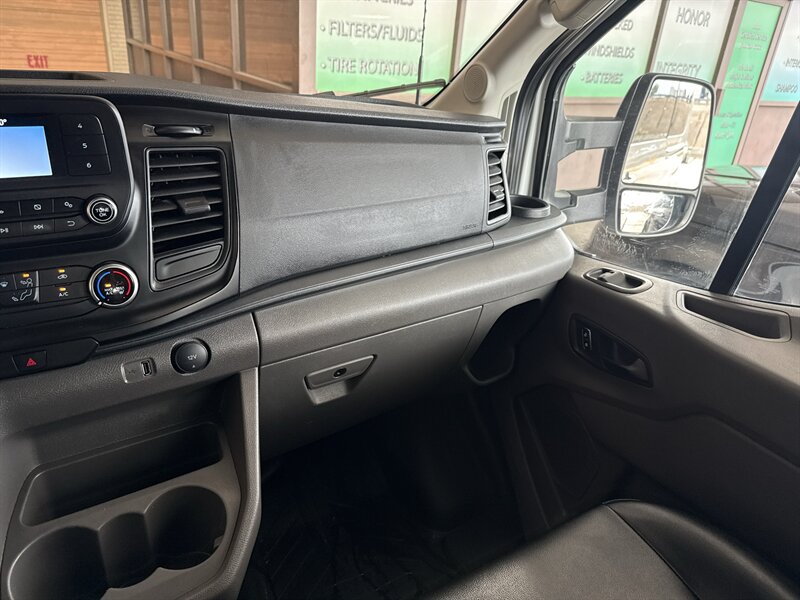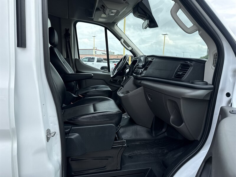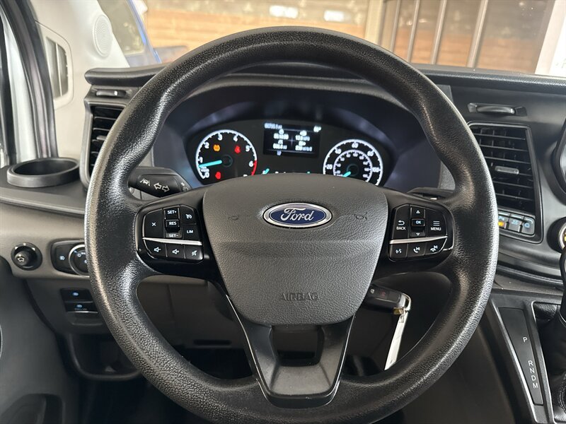 - Airbags and occupant protection: The factory safety suite provides front airbags and side-curtain airbag protection for the cab area, along with three-point seatbelts and a reinforced occupant structure typical of Transit commercial models.